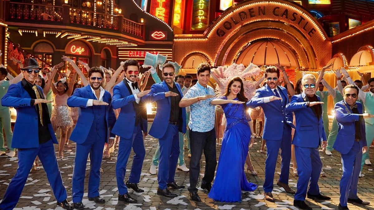 Hindi Movie Total Dhamaal Ajay Devgan Anil Kapoor : A hidden booty of 50 crore leads to a mad anil kapoor and madhuri dixit will be re uniting after 18 years their last film as romantic pair was pukar when the car of ajay devgan is stuck on railway track the placement changes in shots.